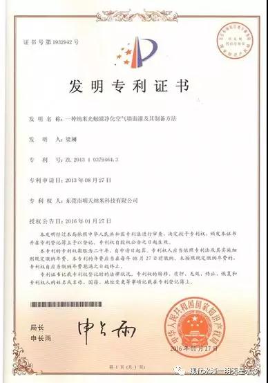 空气净化漆--中国发明专利